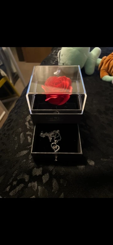 Includes: Heart necklace + preserved rose + transparent acrylic box