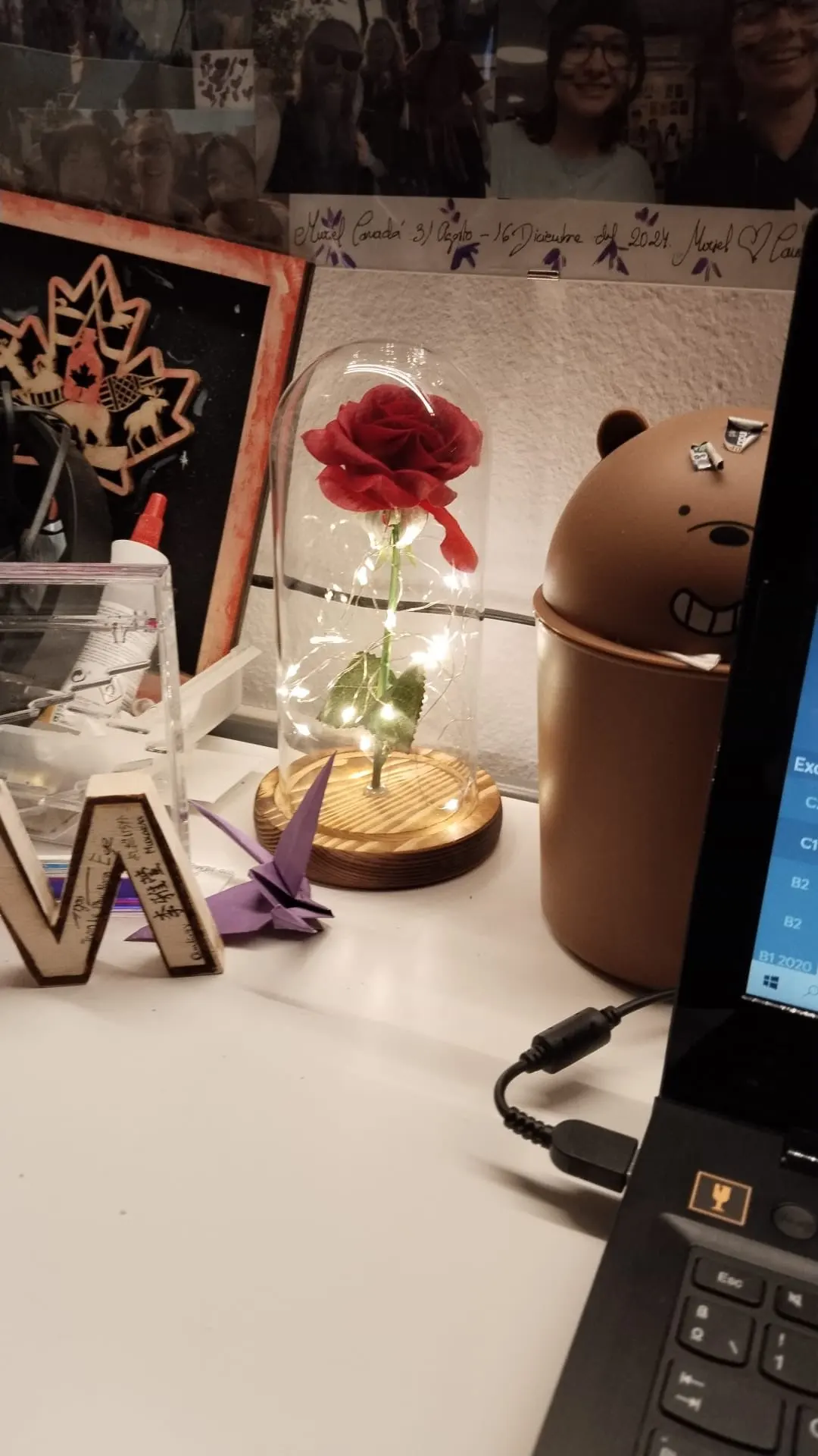 Romantic Rose Lamp - LED Glass Dome Rose Light with Wooden Base